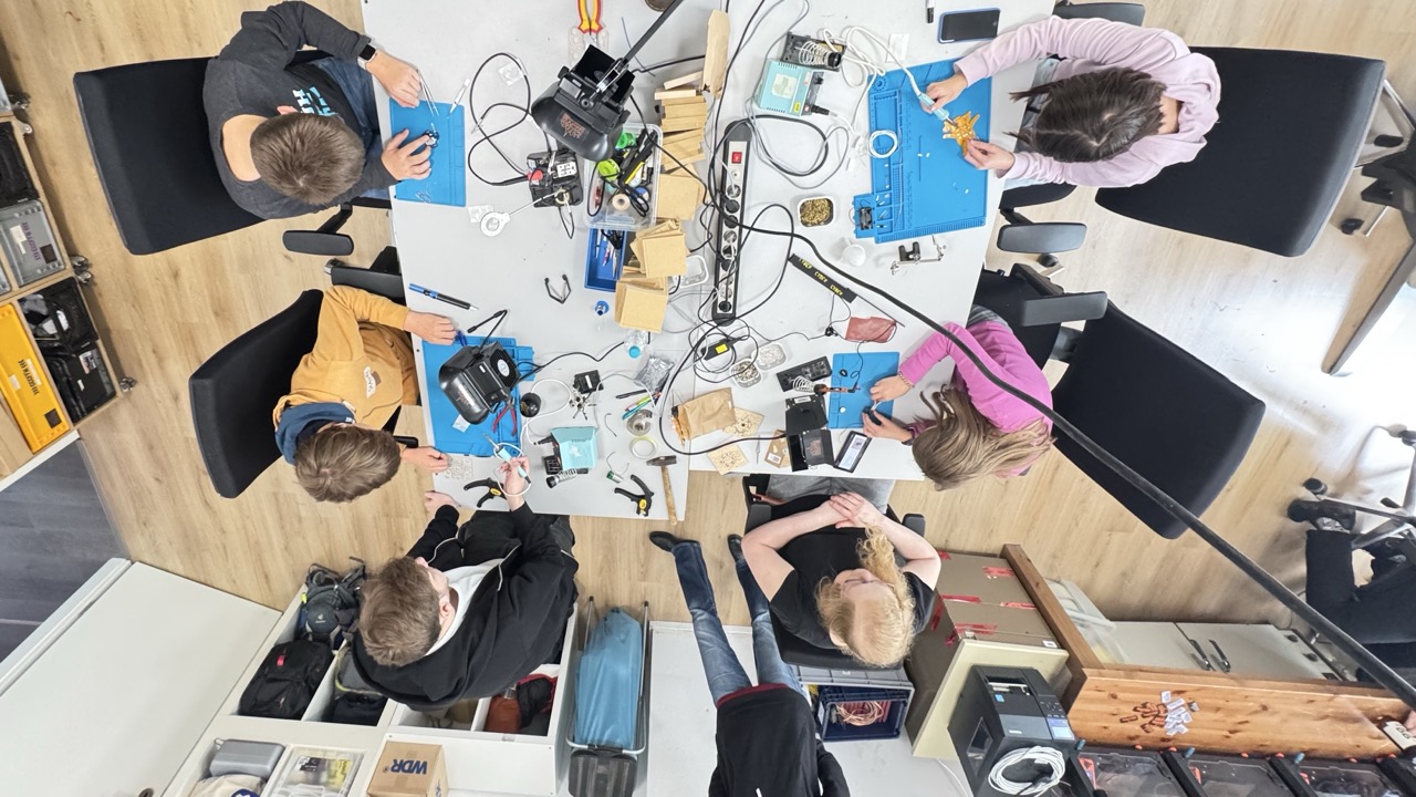 Sie konnten sich, wie schon in den Jahren vorher, mit Löten vertraut machen. Sie stellten kleine Gegenstände mit blinkenden LEDs her, die dann auch mitgenommen werden konnten.